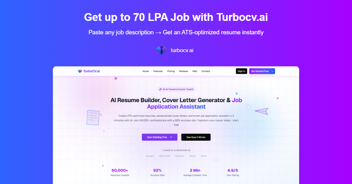 Join thousands of professionals who've transformed their careers with TurboCV's AI-powered tools - Resume Builder, Cover Letter Generator, and Application Q&A.